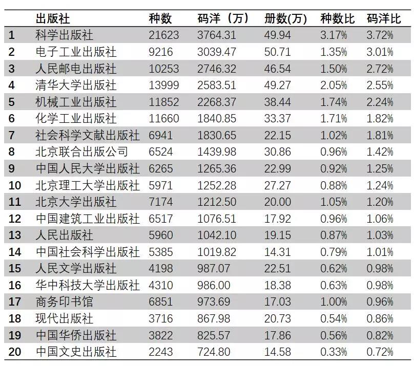 2:2017年出版社館配碼洋貢獻(xiàn)率排行TOP20
