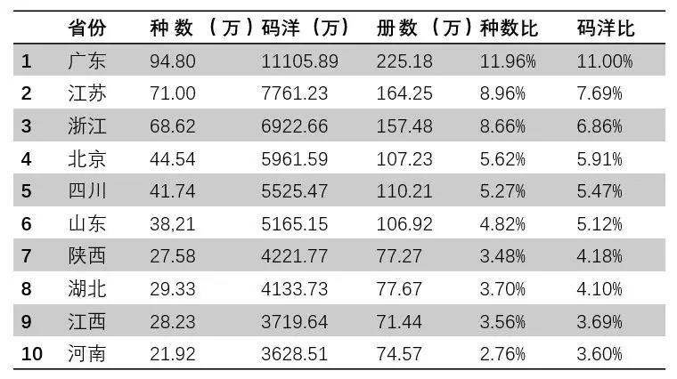 4:2017年全國各省、市、自治區(qū)館配碼洋排名TOP10