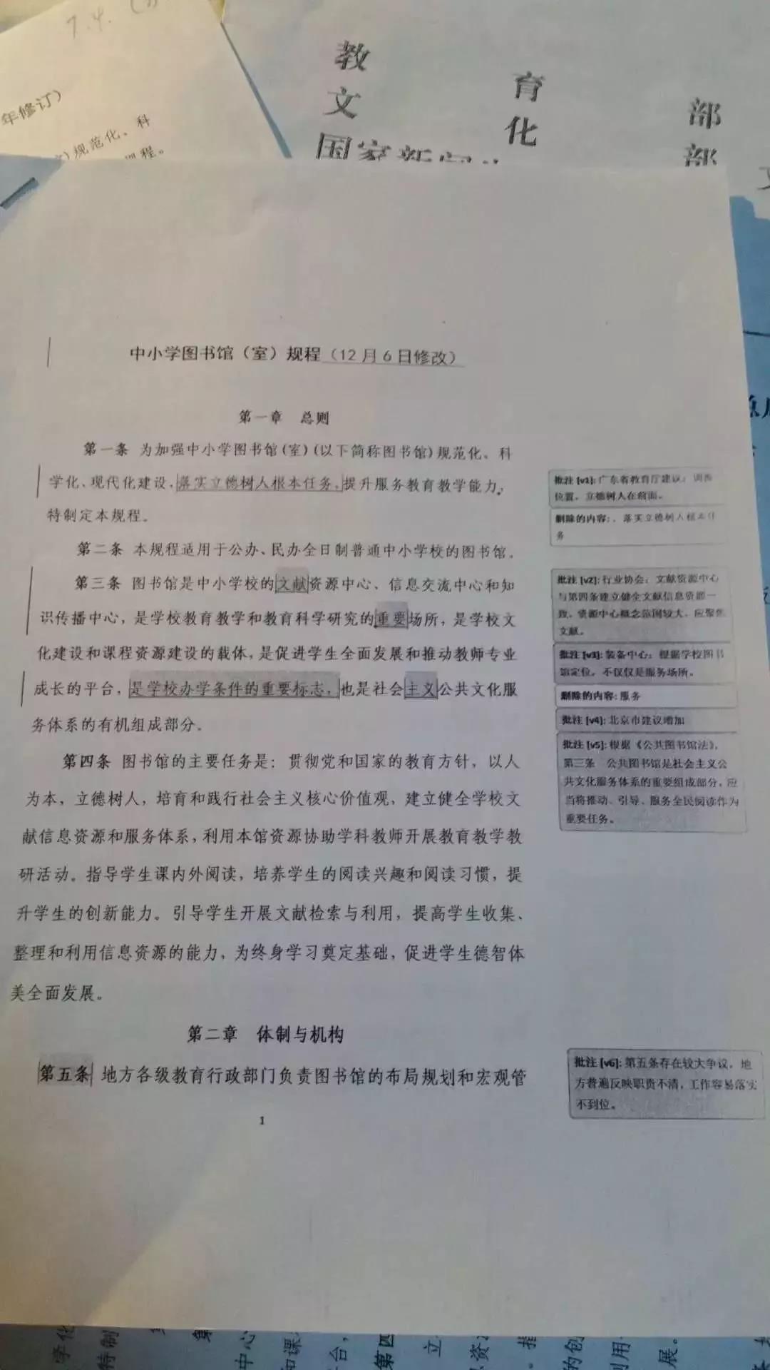 《中小學圖書館(室)規(guī)程》(征求意見稿)自2017年后半年印發(fā)全國征求意見后,引起廣大中小學和相關教育機構的關注,紛紛提出不少建設性的意見和建議。這次會議就是在整理吸收基層學校意見的基礎上,開了幾次專家修改會之后,召開的這次研討會。與會同志在反復討論,統(tǒng)一意見后,逐字逐句對“規(guī)程”文稿再次做了修改。