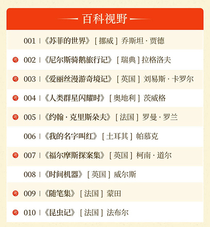 根據教育部的要求,過去是“課外讀物”的很多文學名著,比如《海底兩萬里》《昆蟲記》《蘇菲的世界》等等,已經變成了考試大綱要求的“必讀內容”拿下“文學經典”這個板塊,不僅能提高學習成績,也能大大提高孩子的綜合素質。