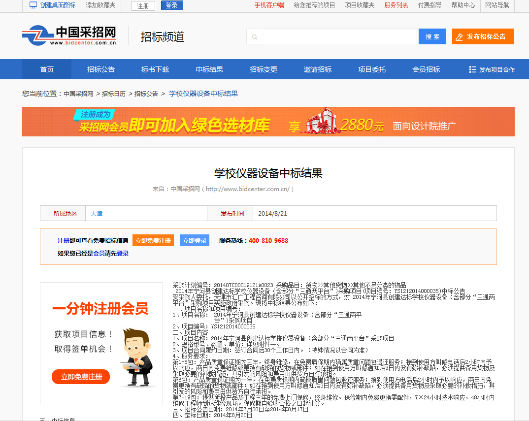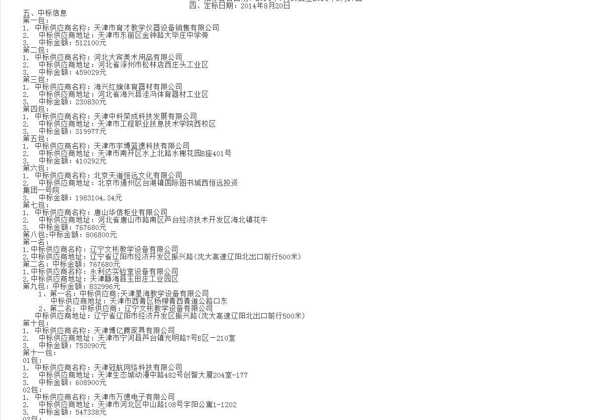 項(xiàng)目名稱:2014年寧河縣創(chuàng)建達(dá)標(biāo)學(xué)校儀器設(shè)備(含部分”三通兩平臺“)采購項(xiàng)目