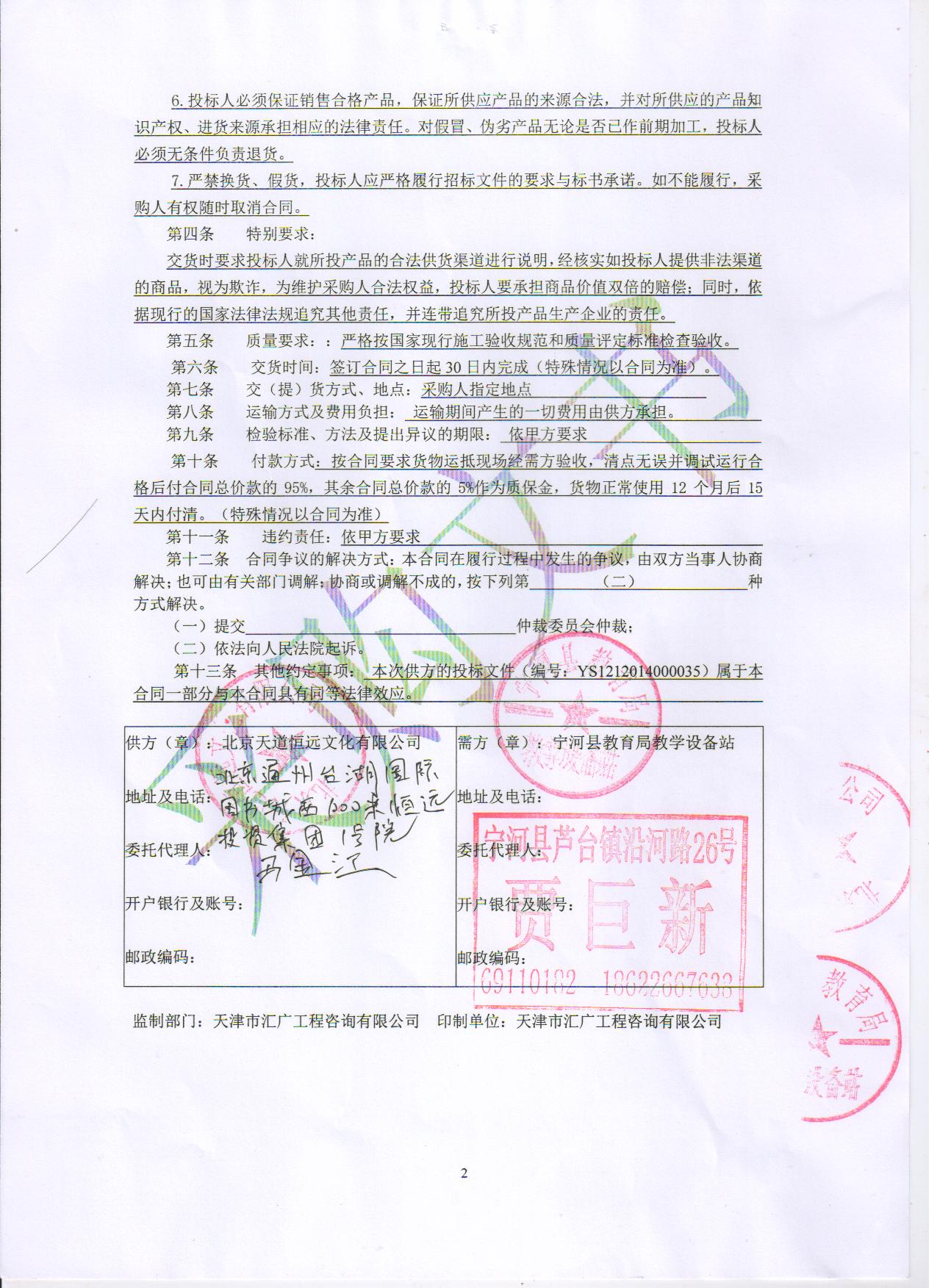 甲方(采購人):寧河縣教育局教學(xué)設(shè)備站