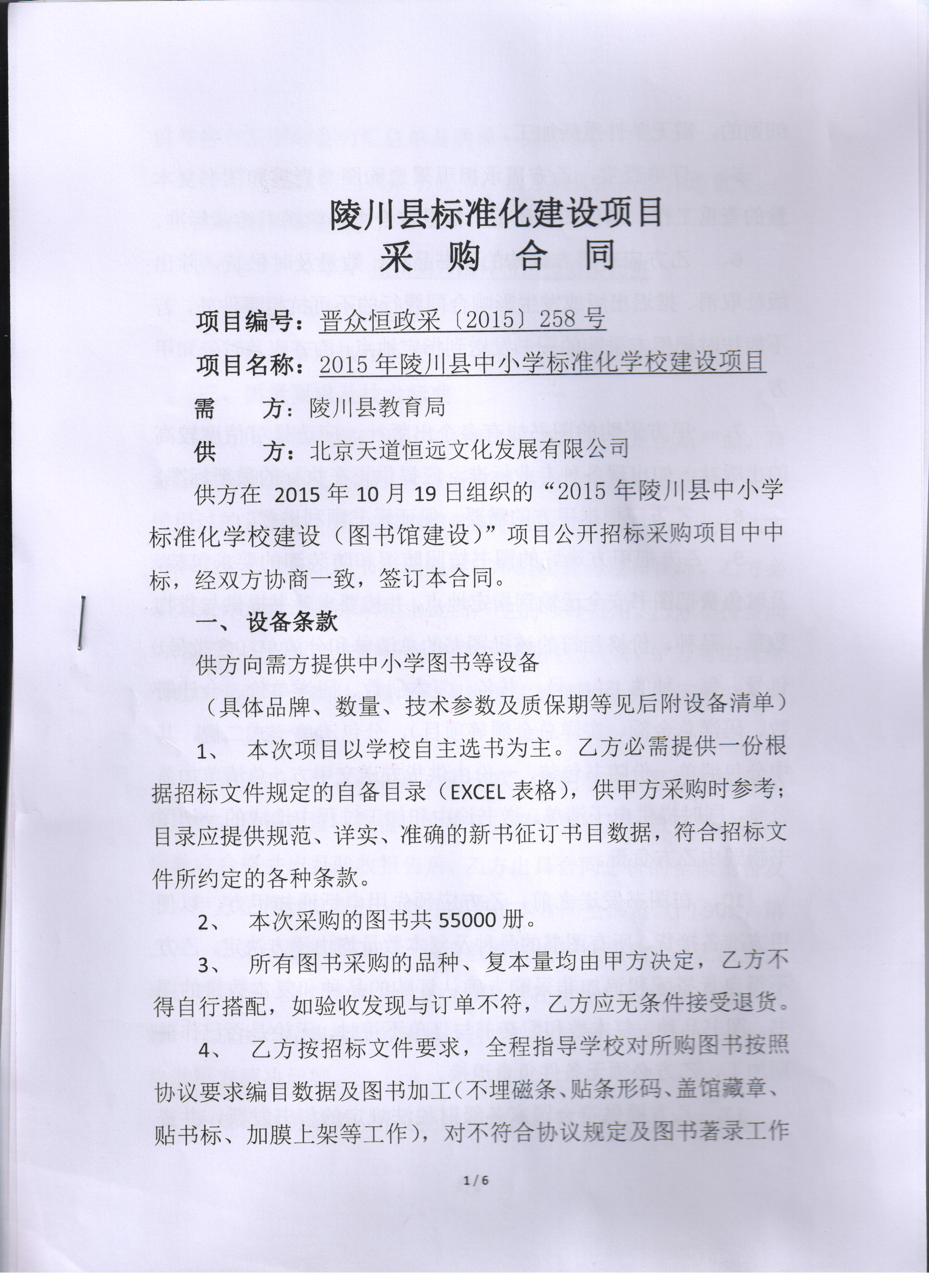 項目編號:晉眾恒政采(2015)258號