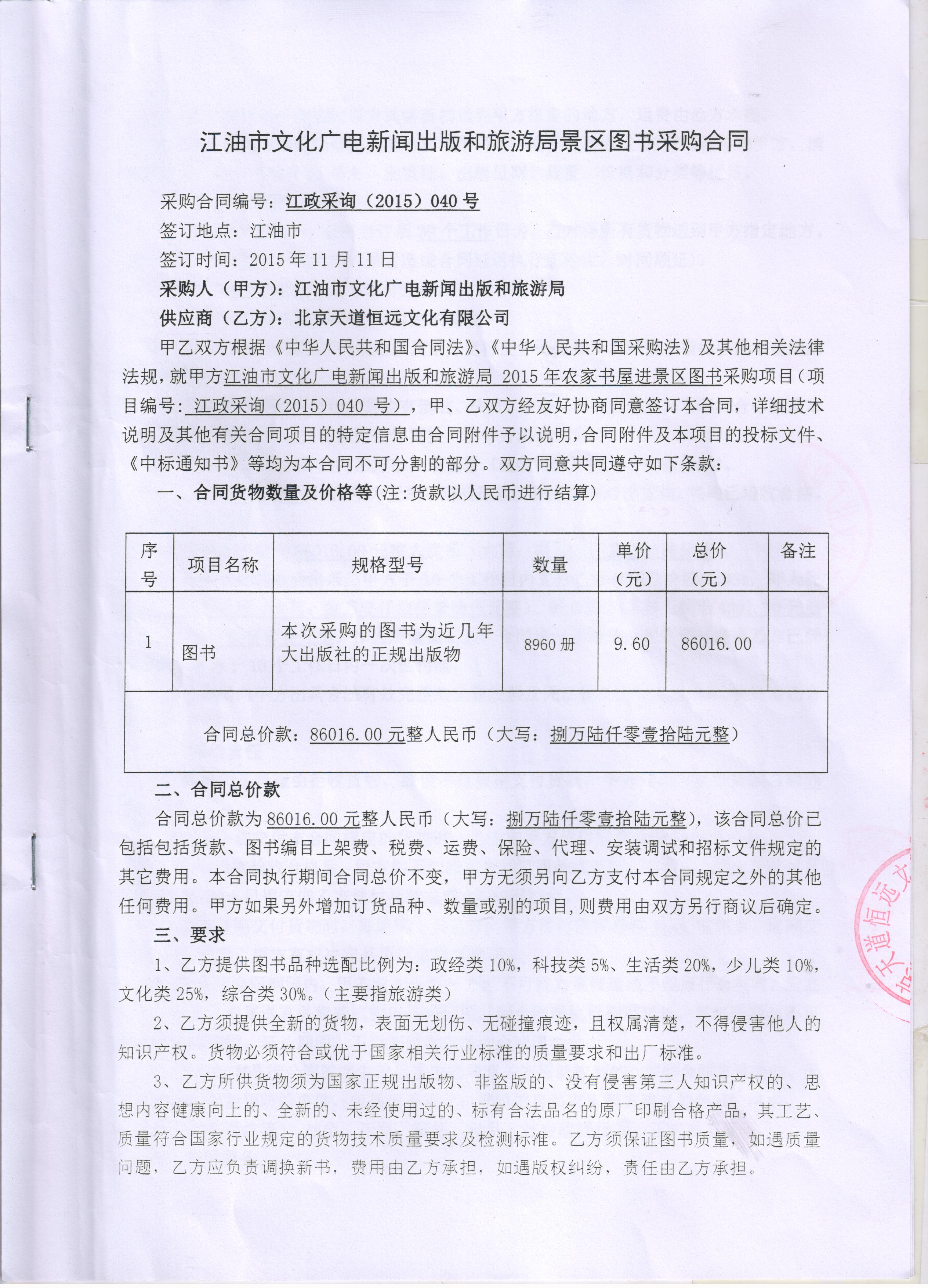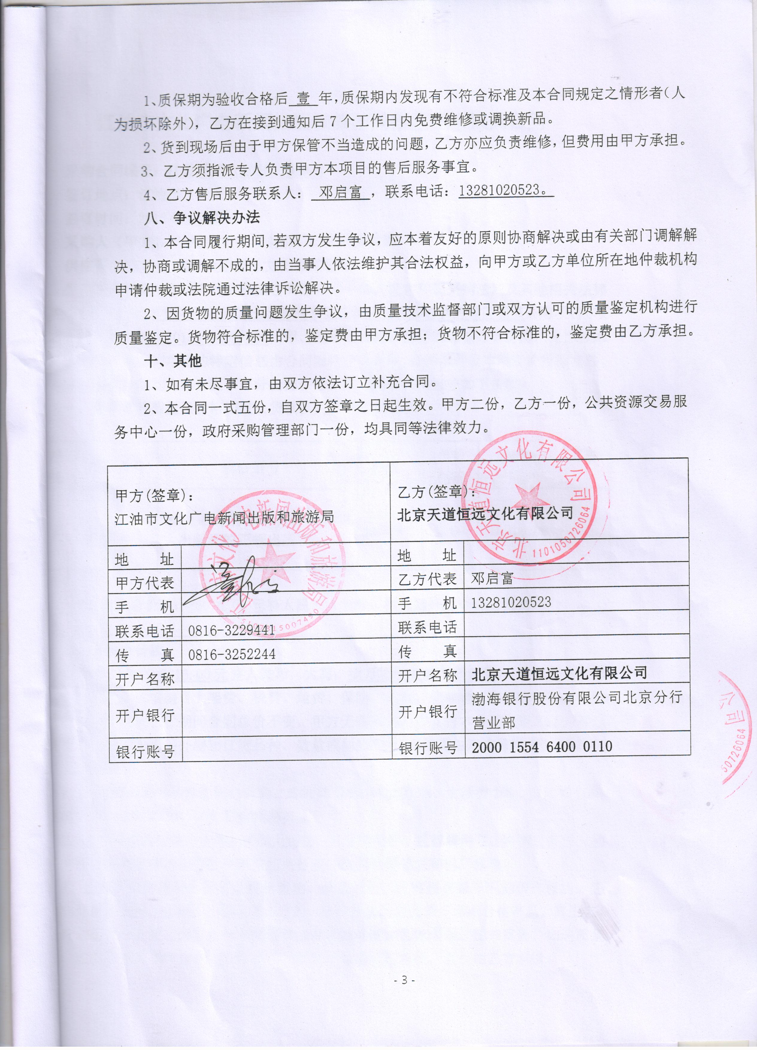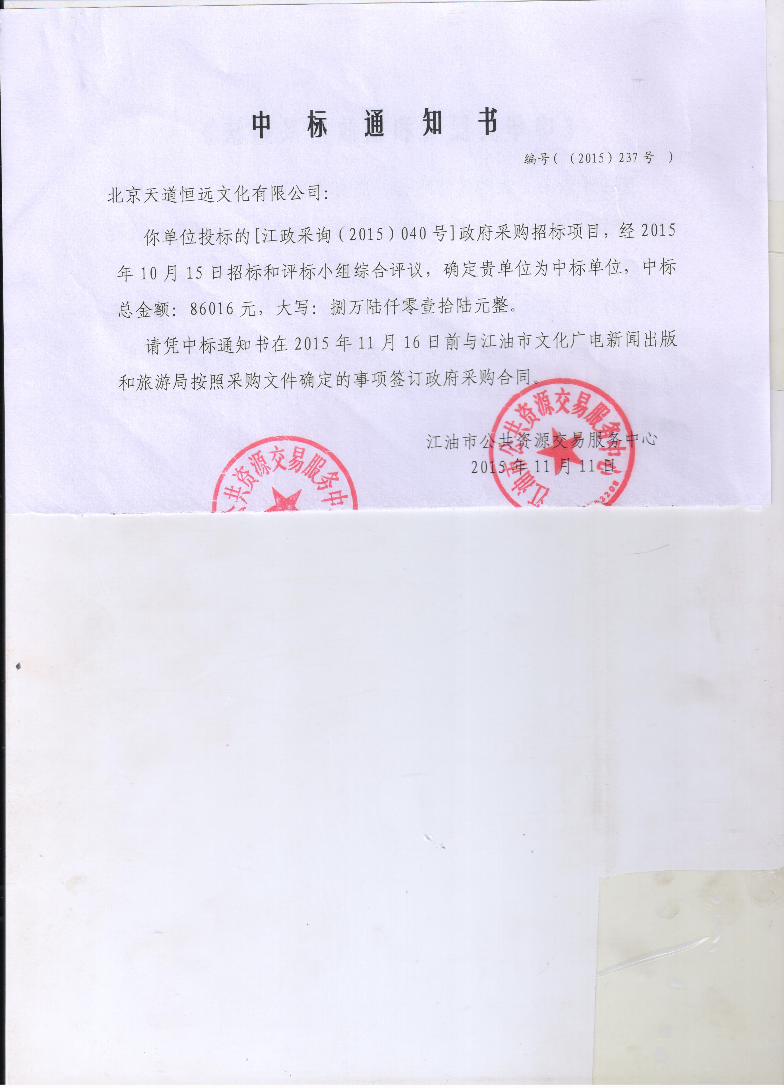 乙方(中標人)北京天道恒遠文化有限公司
