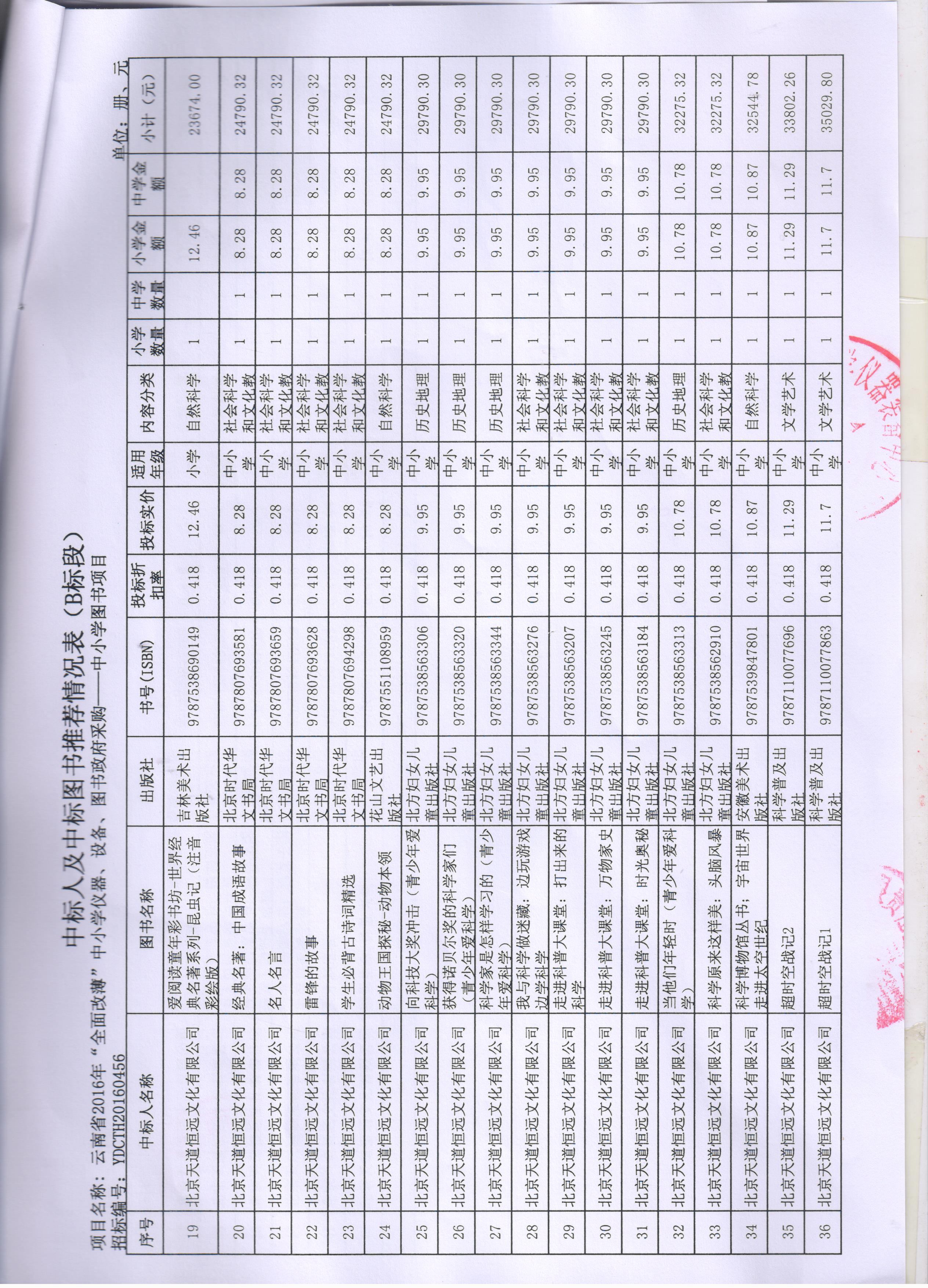 項(xiàng)目名稱:云南省2016年“全面改薄”中小學(xué)儀器、設(shè)備、圖書(shū)政府采購(gòu)--中小學(xué)圖書(shū)項(xiàng)目
